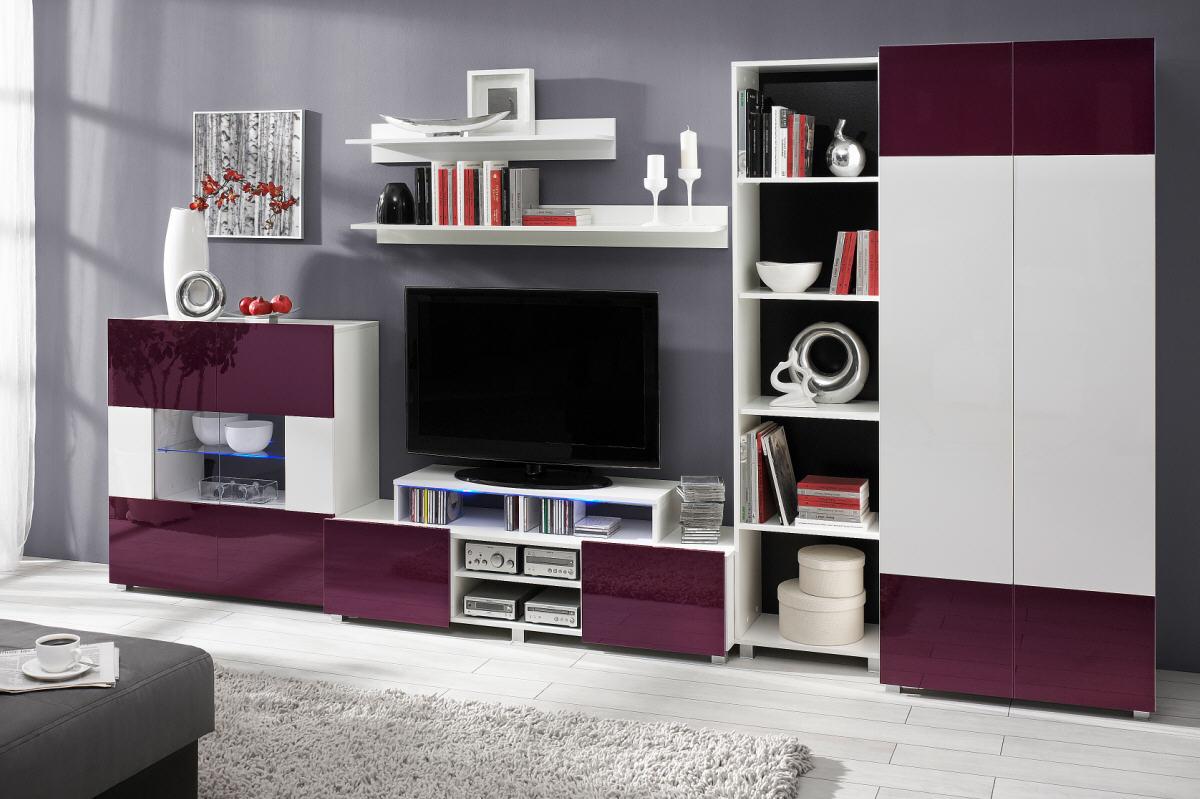 Pořiďte svému obývacímu pokoji moderní nábytek! Obývací stěna Dangelo 12 vám poskytne dostatek úložného prostoru v podobě šuplíků i skříněk. Základ všech komponentů je v bílém provedení, které je na obrázku doplněno fialovými prvky ve vysokém lesku. Výrobce umožňuje výběr různých variací a to jak barevných tak i matné či lesklé varianty. Veškeré možnosti jsou znázorněny pod produktem. Komoda bude dominantou sestavy díky osvětlení a svému designovému vzhledu. Modré podsvícení obzvlášť vynikne v přítmí pokoje. Prosklené vitríny jsou vhodným místem na vaše oblíbené předměty, na kterých se nebude usazovat prach díky proskleným dvířkům. Materiál použitý při výrobě je vysoce kvalitní a odolný, konečný produkt tak bude dlouhodobě sloužit. Lamino je ideálním prvkem pro výrobu nábytku díky svým kladným vlastnostem. Síla lamina je 16 mm. Hrany nábytku jsou vyztuženy ABS lištami.
